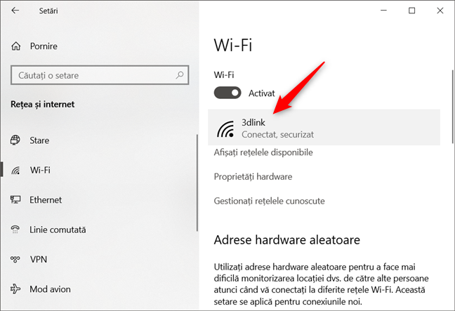 În partea dreaptă a ferestrei, indiferent dacă folosești o conexiune de rețea cu fir sau wireless, apasă pe numele conexiunii tale de rețea.